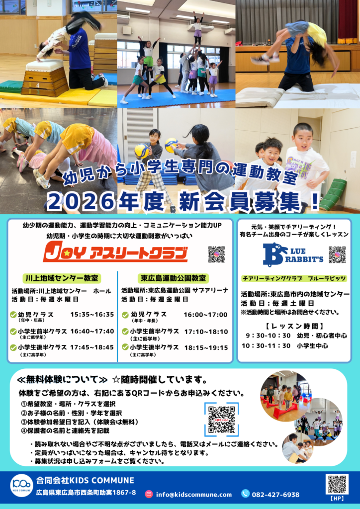 運動公園教室・川上地域センター教室・チアリーディングクラブブルーラビッツの新年度、会員を募集中です!